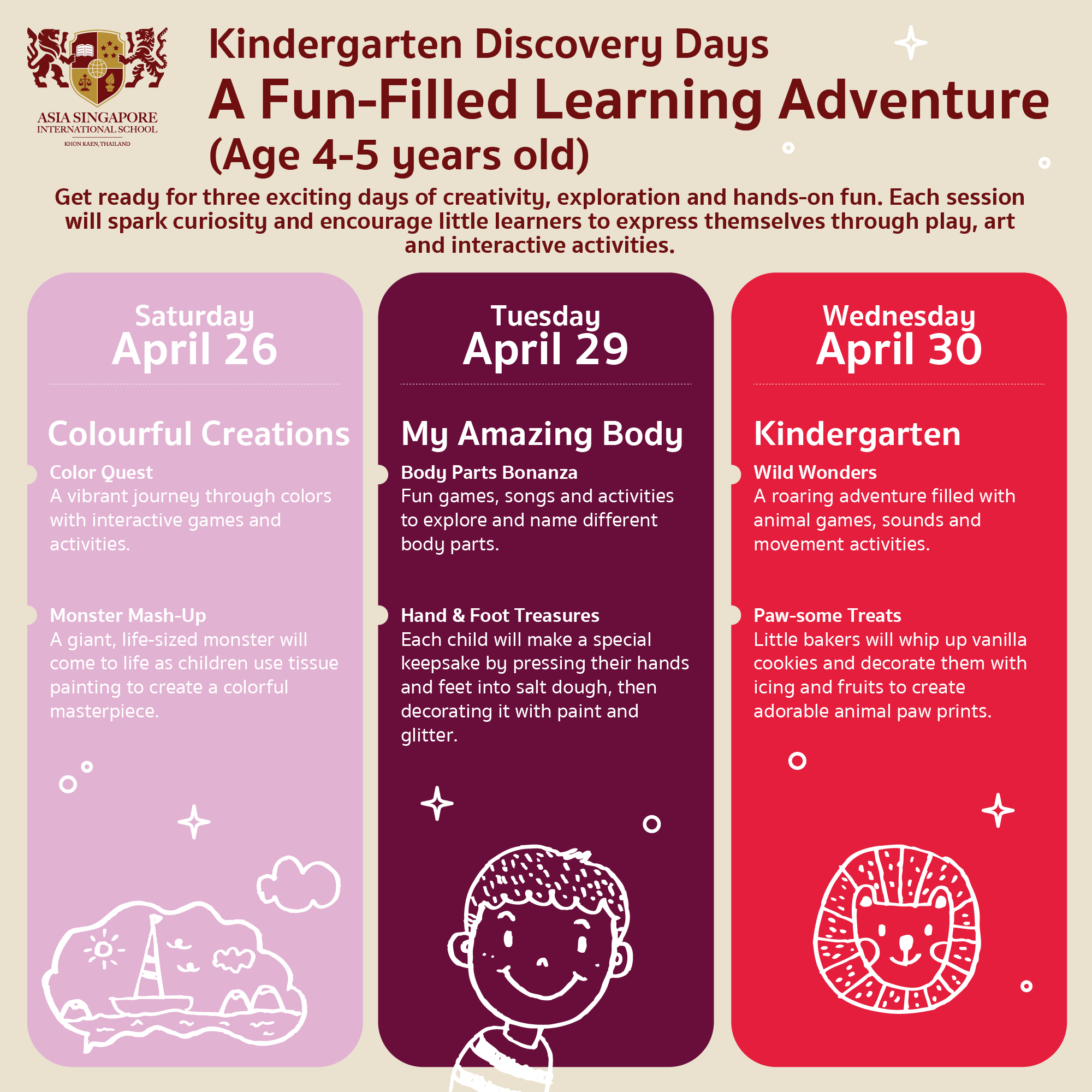 👧 Kindergarten (4–5 years): April 26, 29, 30